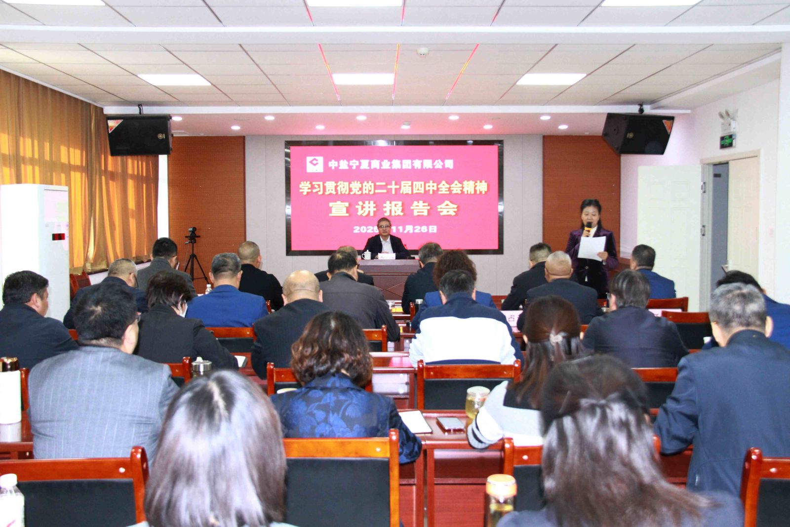 11月26日,中盐宁夏公司党委召开学习贯彻党的二十届四中全会精神宣讲报告会,邀请自治区宣讲团成员、自治区党委金融办常务副主任王小成作专题辅导报告。宁夏公司党政班子成员、中层管理人员、党员代表等共计50余人聆听了报告。