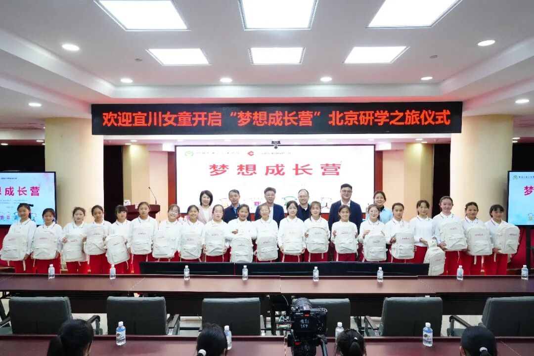 仪式上,宜川县学生代表表演了独唱和集体节目,展现了蓬勃朝气。获得中盐集团励志奖学金的宜川籍大学生、小学生代表先后发言,分享了她们在帮扶政策关爱下的成长感悟,表达感恩与奋进之心。与会领导向学生代表颁发纪念书包,传递了对学子们的深切关怀与鼓励。随后,李忠明郑重宣布:“梦想成长营”正式开营!全场掌声热烈,宜川女童北京研学之旅在温暖热烈的氛围中扬帆起航。